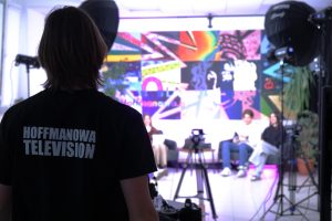 Za organizację wydarzenia odpowiadał zespół uczniów. Klasy pierwsze i drugie przygotowały sale tematyczne, materiały promocyjne oraz oprawę wizualną. Na pierwszym piętrze można było zobaczyć starannie wykonane tablice kredowe i efektowną ilustrację Hoffmanowej, która przyciągała wzrok wszystkich odwiedzających. HoffDay miał nie tylko przemyślaną strukturę, ale i spójną estetykę – wyraźną w plakatach, oznaczeniach i detalach przestrzeni. HoffTV prowadziło transmisję na żywo. Sekretariat zapewniał obsługę materiałów informacyjnych, a Rada Rodziców wspierała działania organizacyjne.