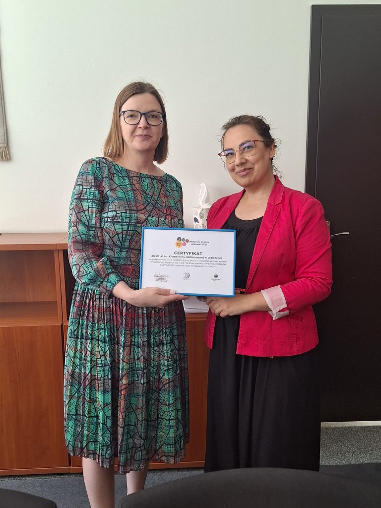 Na ręce dyrektorki liceum Joanny Redak trafił certyfikat podpisany przez Grzegorza Kopaczewskiego, dyrektora Stowarzyszenia Wikimedia Polska, w podziękowaniu za włączenie się w działania edukacyjne wokół Wikipedii oraz wyjątkowe upamiętnienie rocznicy powstania szkoły.