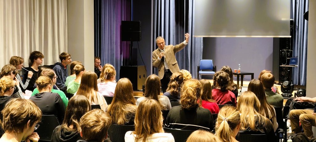 Wykład nie był jednak jedynie prezentacją wiedzy z zakresu nauk ścisłych. Prof. Buchner podkreślał także znaczenie zachwytu, pokory i gotowości do stawiania pytań. Pokazywał, że współczesna nauka – choć niezwykle skuteczna – nadal odsłania jedynie niewielką część tego, czym jest życie i jak funkcjonuje świat. W tym sensie pozostaje ona nie tylko narzędziem poznania, ale również szkołą intelektualnej uczciwości.